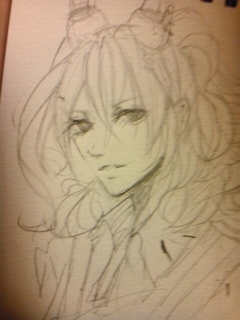 下絵段階ではもう少し髪の毛がかかっていて顔が隠れてました。